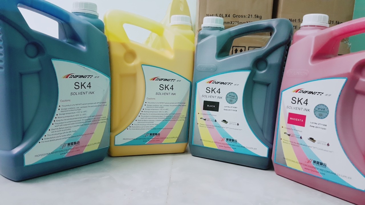 Đặc điểm nổi bật của mực in sk4: với công nghệ tiên tiến mực in sk4 có hạt nhỏ mịn, chuẩn màu cho ra sản phẩm sắc nét nổi bật - thích hợp với máy in quảng cáo infiniti